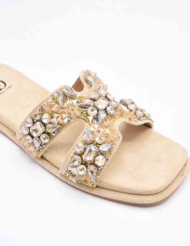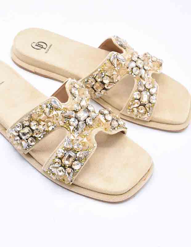 כפכף שטוח ביופי עוצר נשימה – רצועה אחת משובצת אבנים נדירות שמנצנצות בכל צעד, בעיצוב שאין שני לו. דגם מיוחד, מלא שיק וסטייל, שכל פרט בו זועק ייחודיות ואלגנטיות. בדיוק הפריט שאת חולמת עליו – כזה שלא רואים בכל מקום, ושהולך להפוך ל־It Shoe של הקיץ.