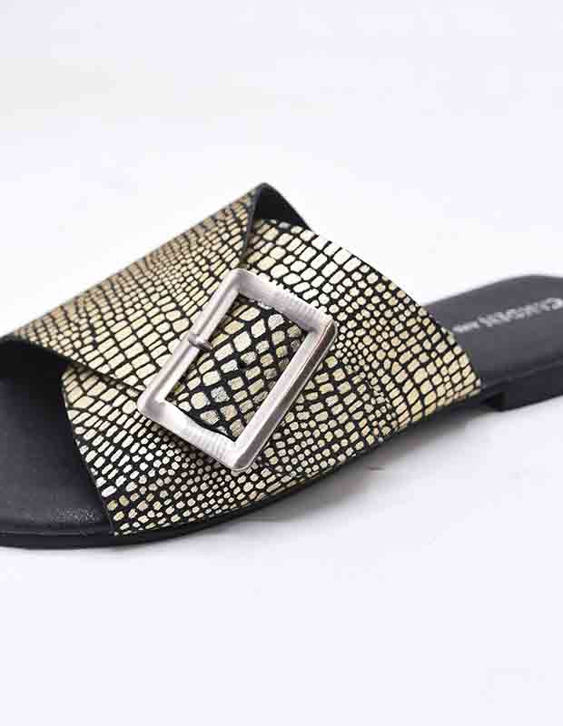 כפכף קייצי מעור אמיתי, המשלב נוחות וסטייל בקיץ החמים. הסוליה המרופדת מעניקה הליכה נוחה ורכה, בעוד שהחלק העליון עשוי מעור איכותי שעוטף את הרגל בצורה מדויקת ומרשימה. הצבעים המקסימים והחיים של כפכף זה משלבים בין יופי לפונקציונליות, ומתאימים לכל סגנון. עיצוב מודרני ואלגנטי שמתאים לכל אירוע קיץ.