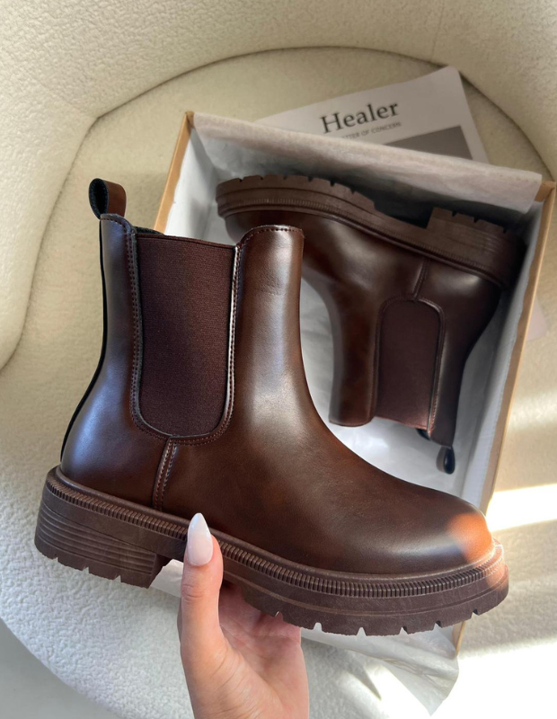 מגפון אופנתי דמוי עור  עם גומי צד רחב שמעניק מראה עדכני ונוחות מקסימלית. קל, יומיומי ומלא סטייל — הדגם שתמיד צועד ראשון בשורת הטרנדים ומרים כל לוק בקלות.