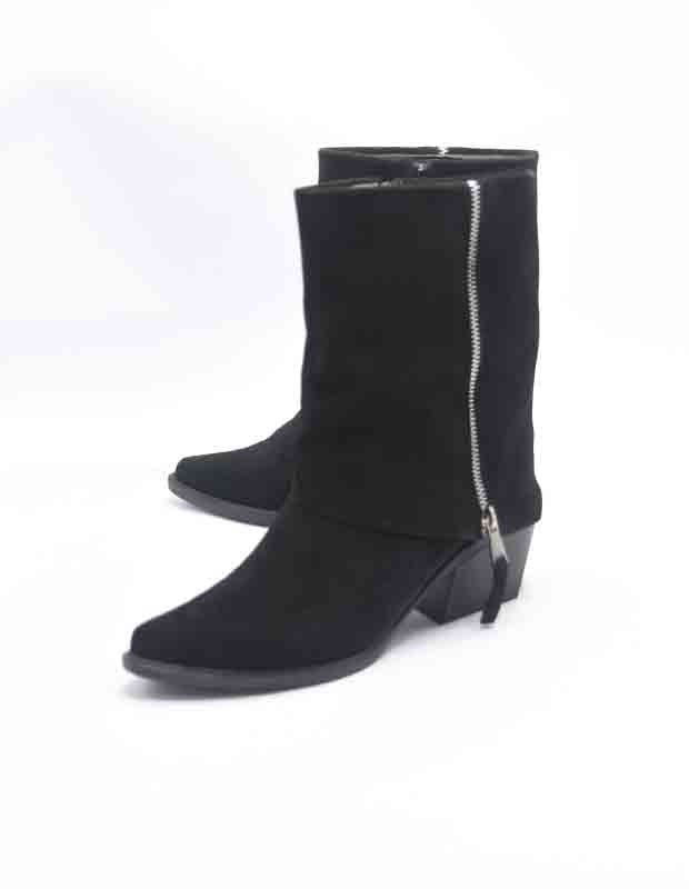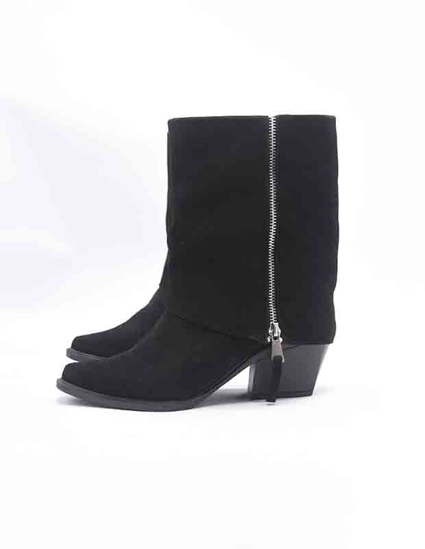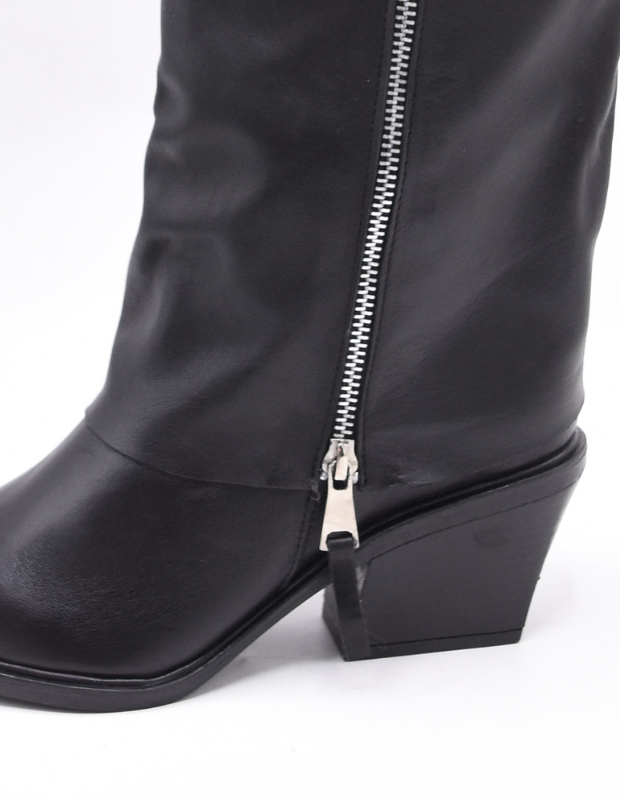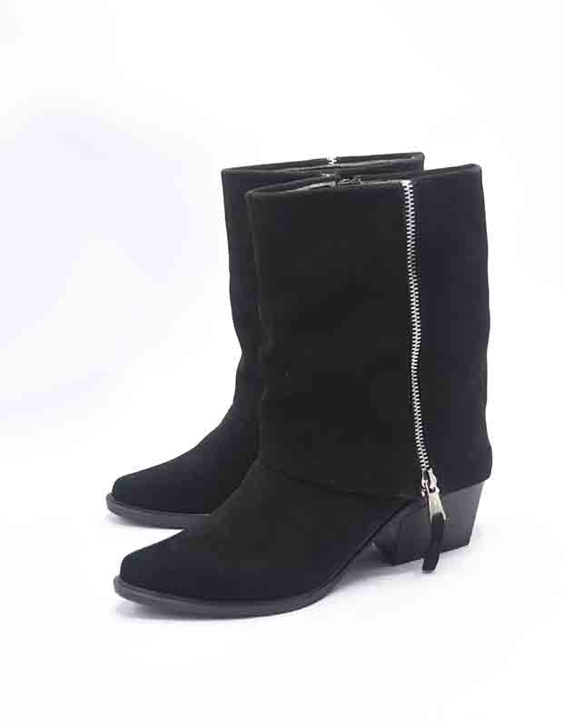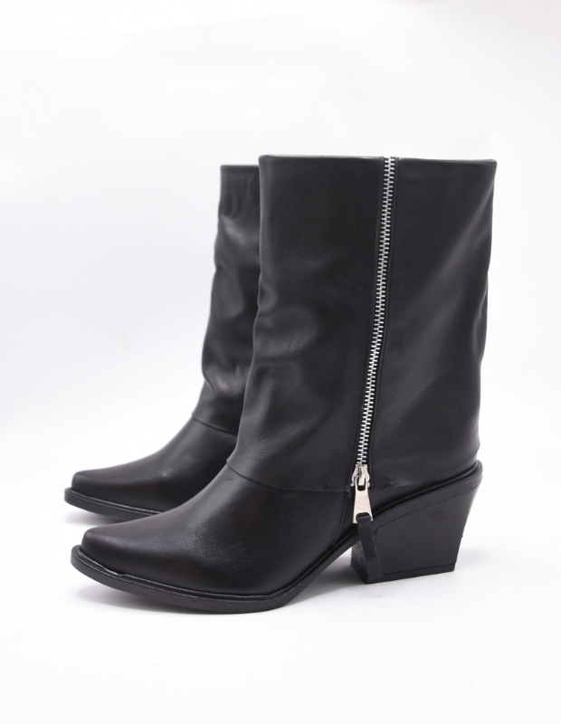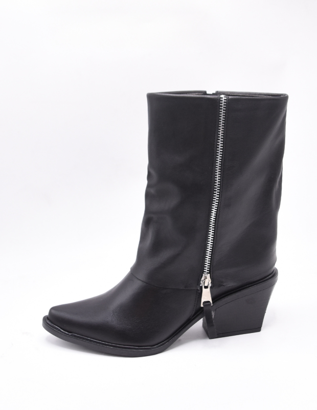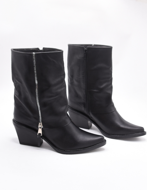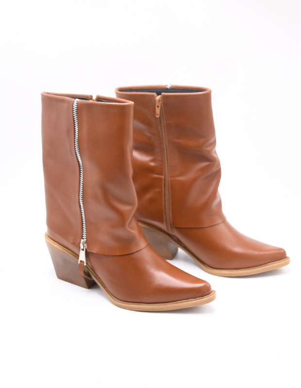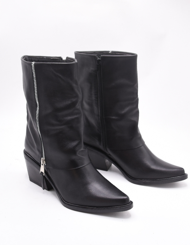 מגפון עור עם עקב בינוני ורוכסן צד דקורטיבי – מראה קלאסי עם טאץ’ מערבי מלא נוכחות.