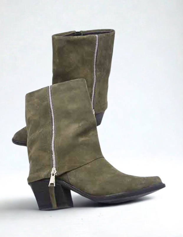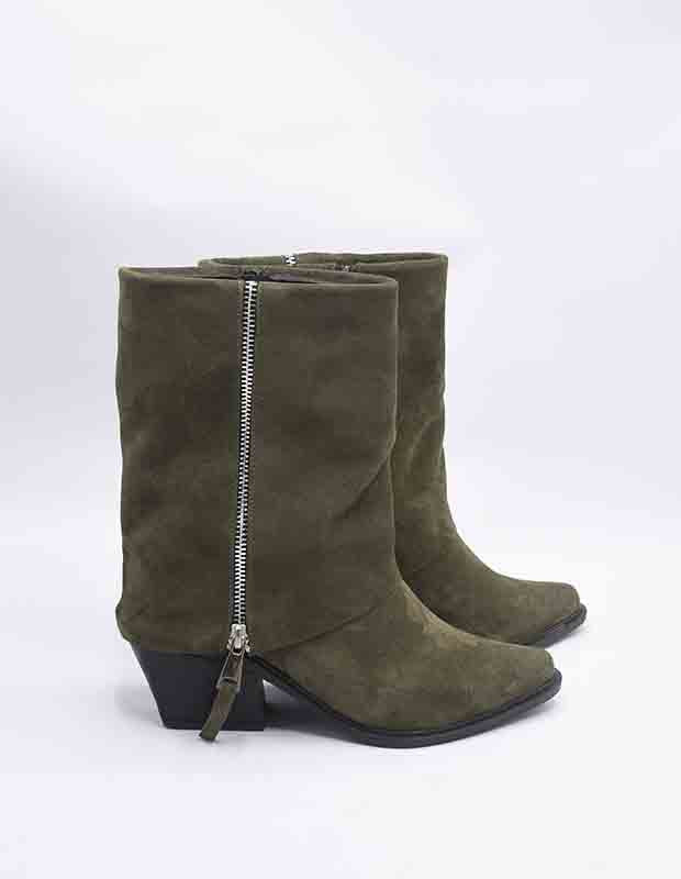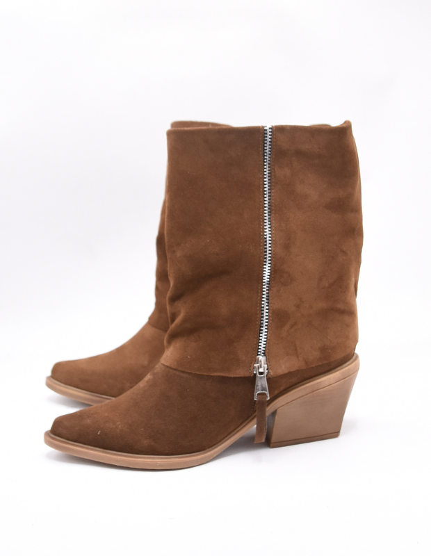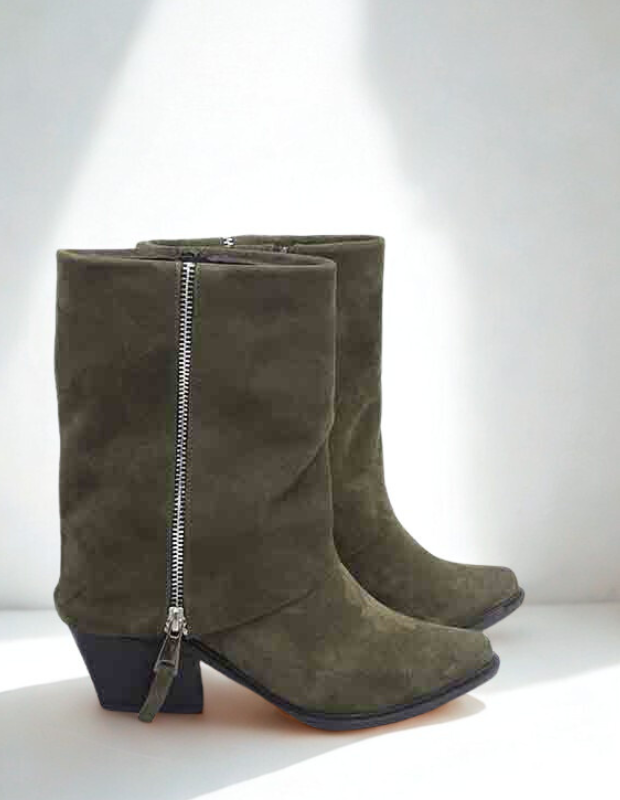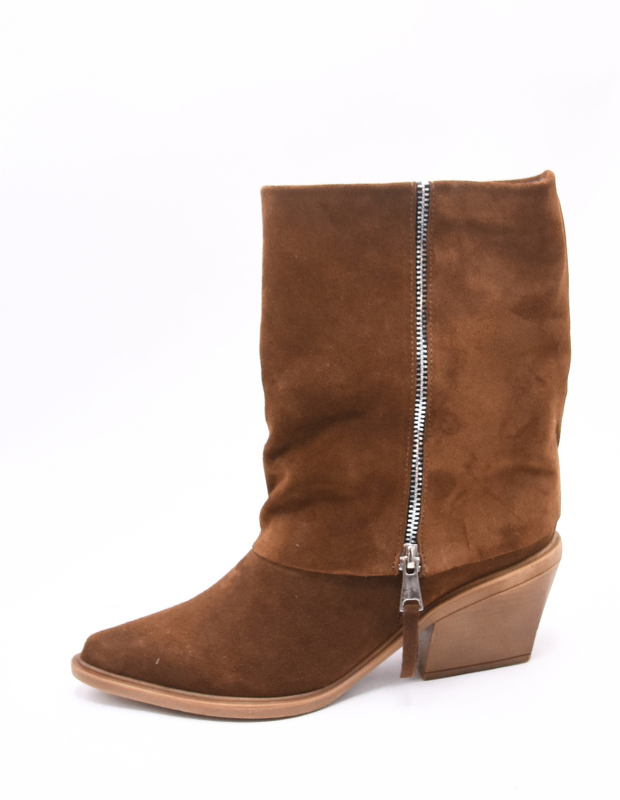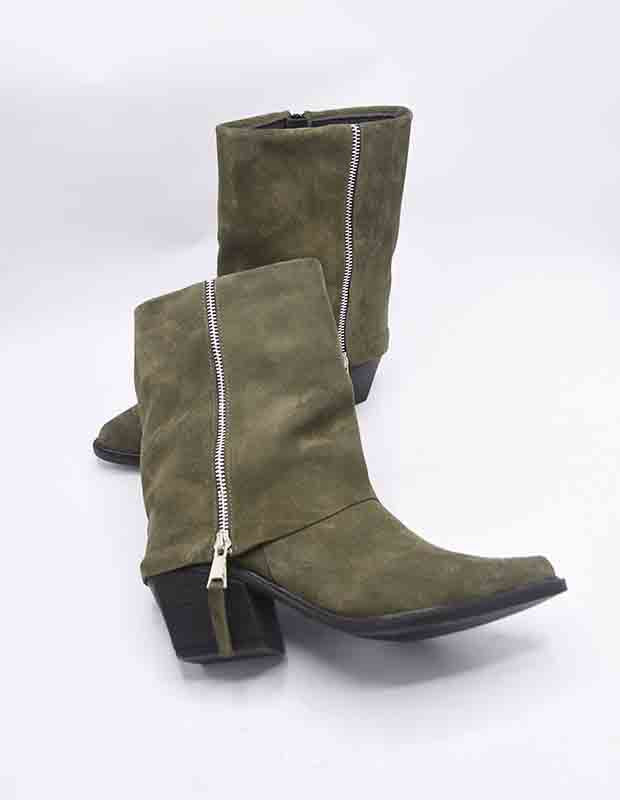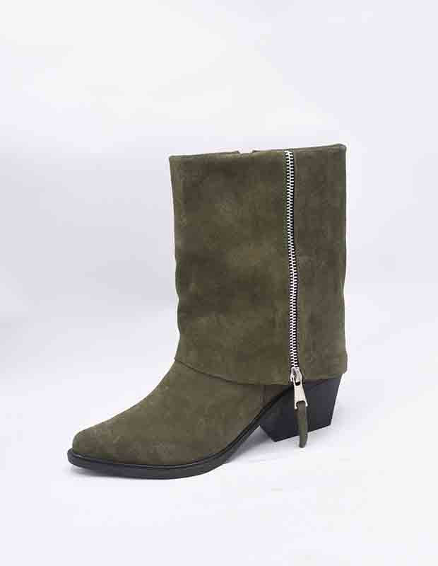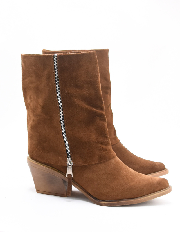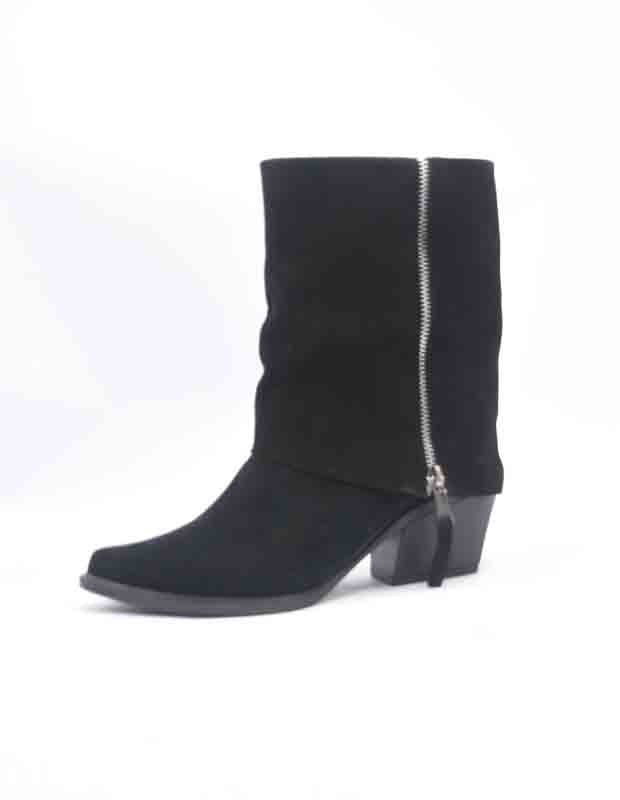 מגפון עור עם עקב בינוני ורוכסן צד דקורטיבי – מראה קלאסי עם טאץ’ מערבי מלא נוכחות.