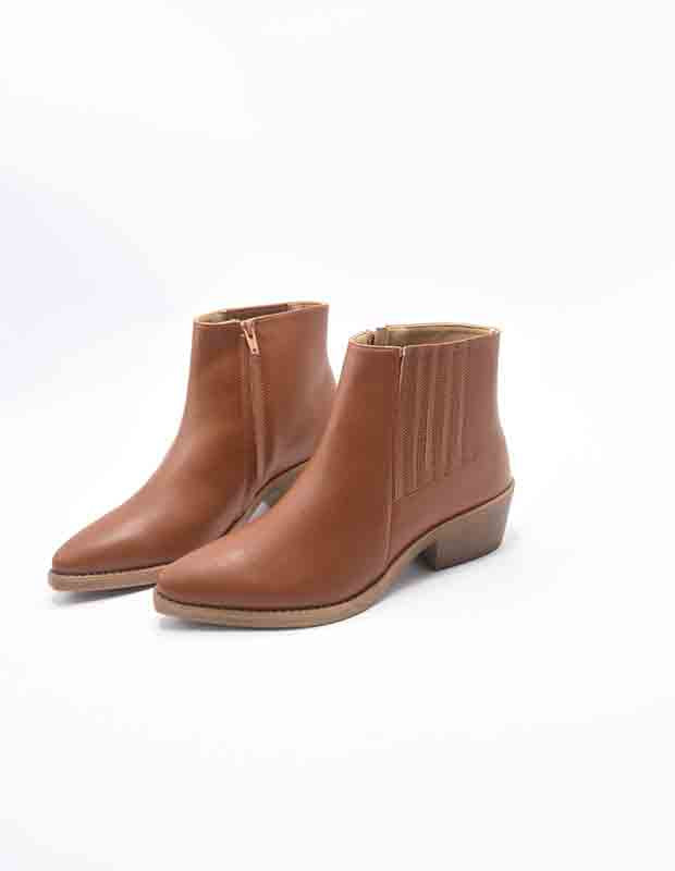 מגפון בגזרת בוקרים אלגנטית, בעיצוב מינימליסטי ומוקפד, עשוי מתחליף עור איכותי בעל מראה חלק, עשיר ומבריק במידה הנכונה.
