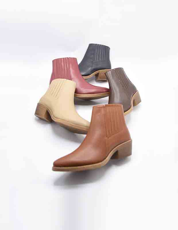 מגפון בגזרת בוקרים אלגנטית, בעיצוב מינימליסטי ומוקפד, עשוי מתחליף עור איכותי בעל מראה חלק, עשיר ומבריק במידה הנכונה.