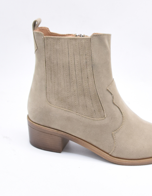 מגפון אלגנטי בהשראת המערב הפרוע, בגוון חום טבעי וניחוח אורבני. עשוי חומר דמוי זמש איכותי, עם גזרה נקייה וקימור עדין בצד שמעניק טאץ’ ייחודי ומחמיא לרגל. הסוליה היציבה והעקב הנמוך מבטיחים נוחות לאורך כל היום.