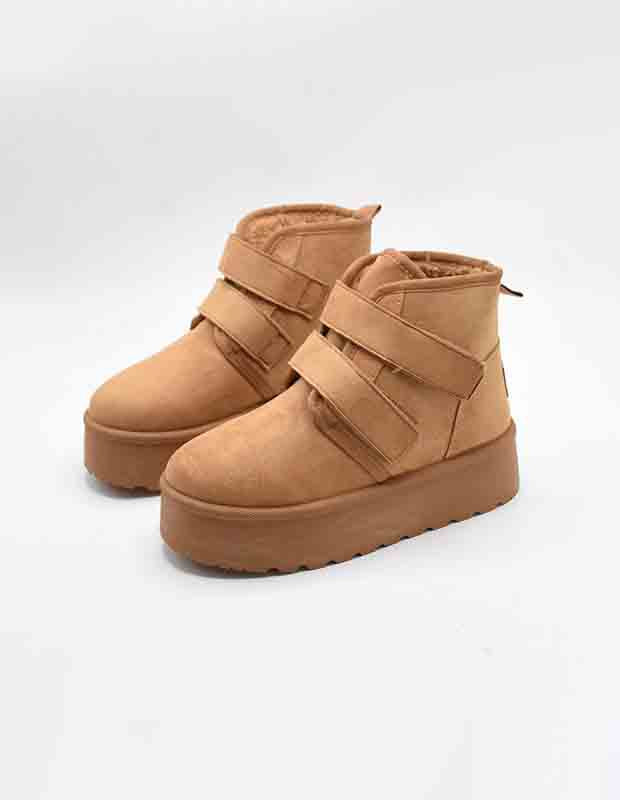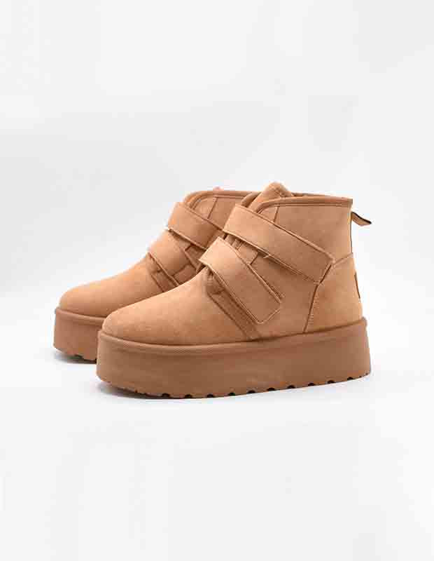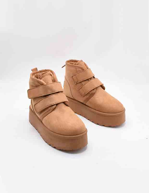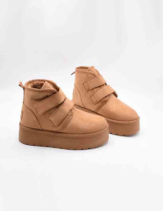 מגפון חורפי עם פרווה פנימית מפנקת, רפידת נוחות רכה במיוחד וסוליית פלטפורמה קלה שנותנת בוסט עדין לגובה בלי להרגיש עקב.
