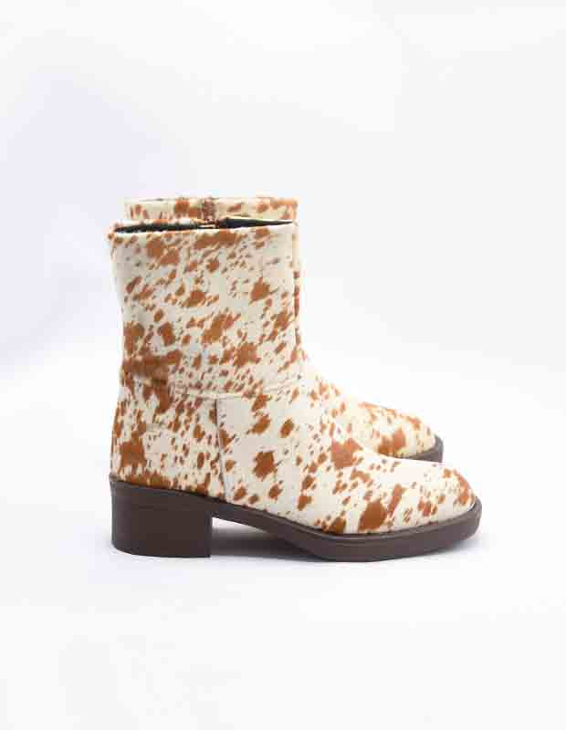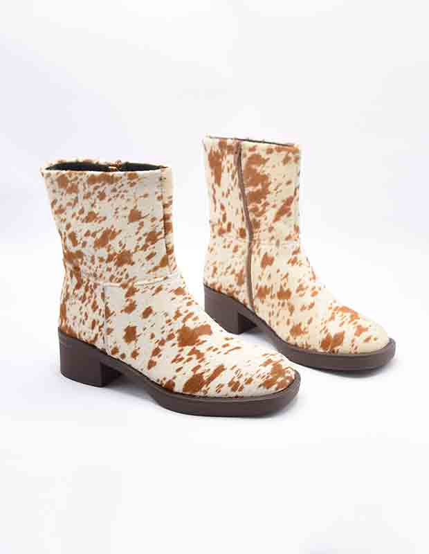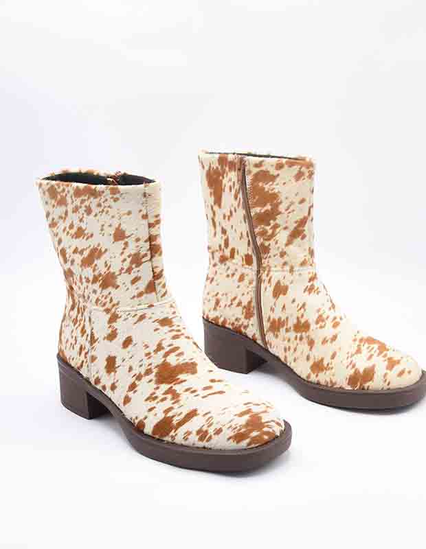 הדפס ה-Ranch המנוקד נוצר בטכניקת צביעה אומנותית שמדגישה את סיבי השיער הטבעיים ומעניקה לכל זוג אופי ייחודי. הגזרה המושלמת מחבקת את הרגל בצורה מחמיאה, עם עקב נוח ורוכסן צד פנימי לנעילה קלה ומהירה.