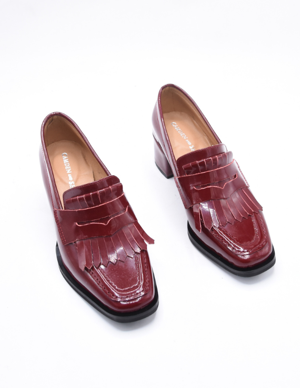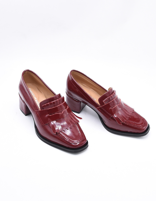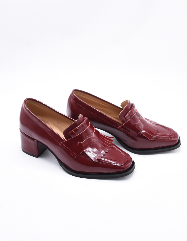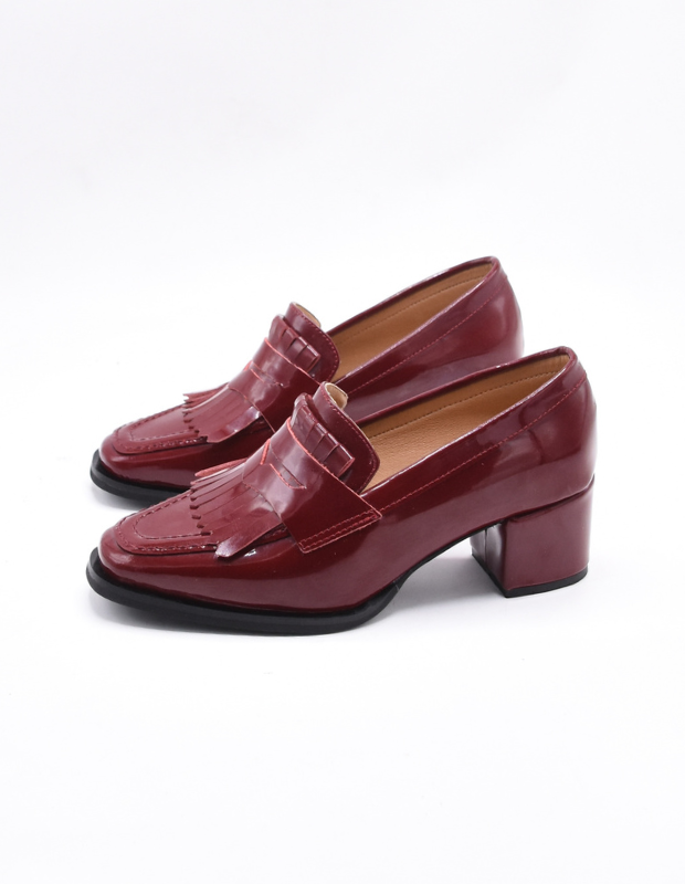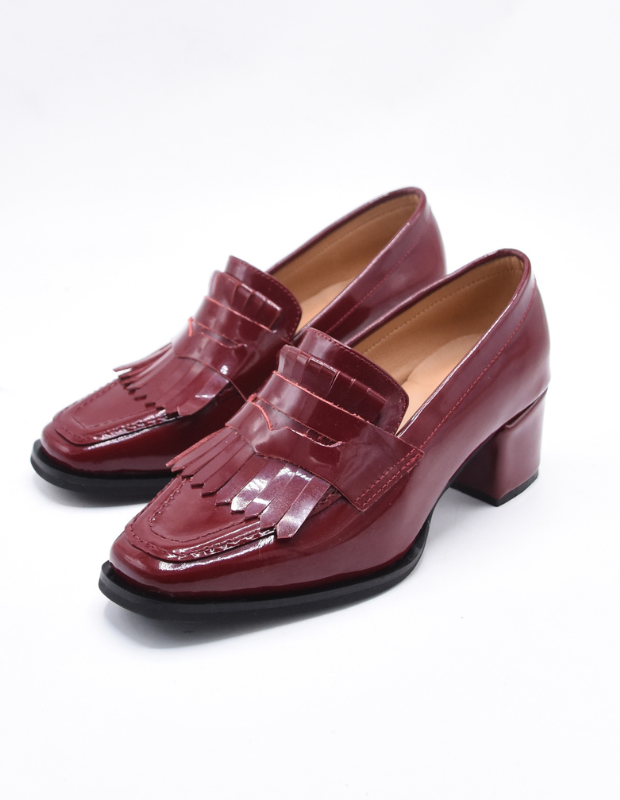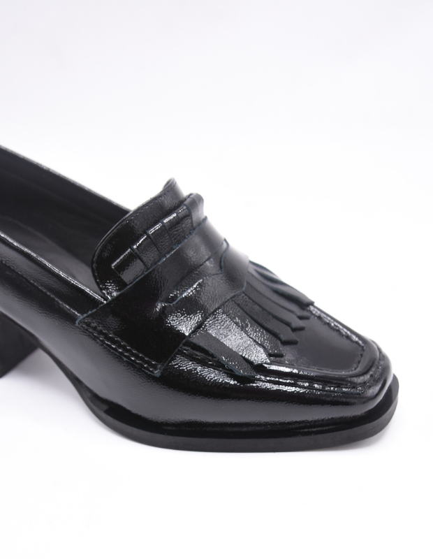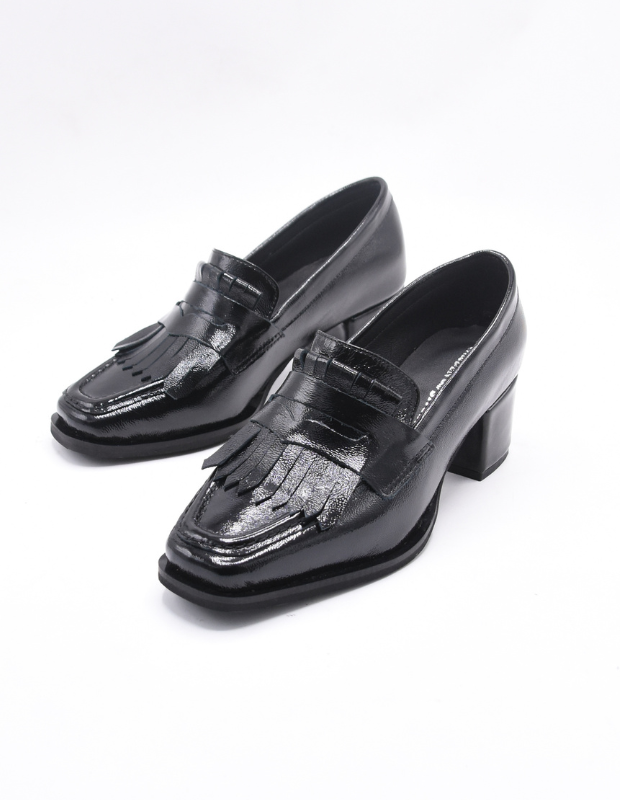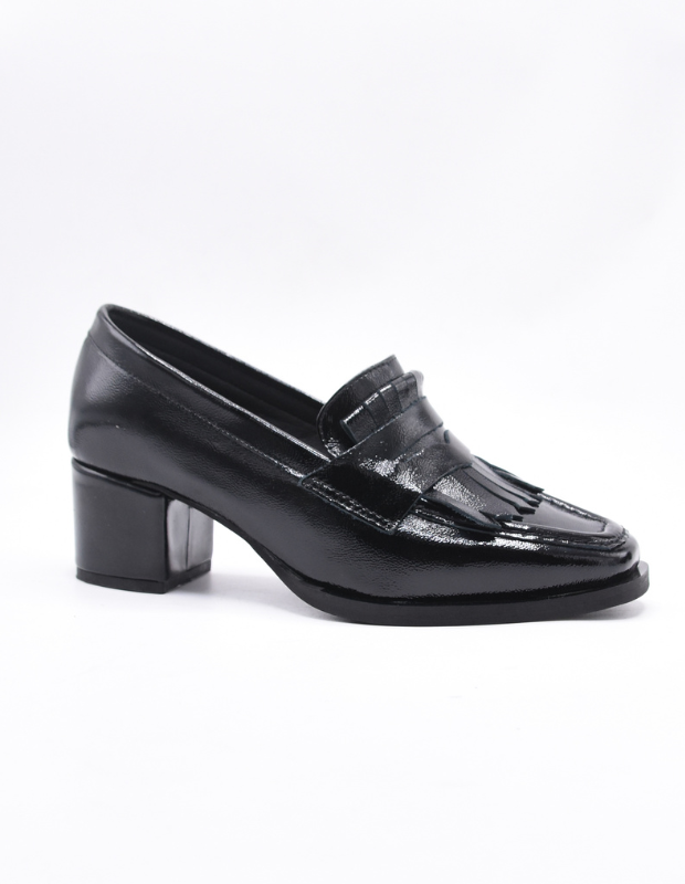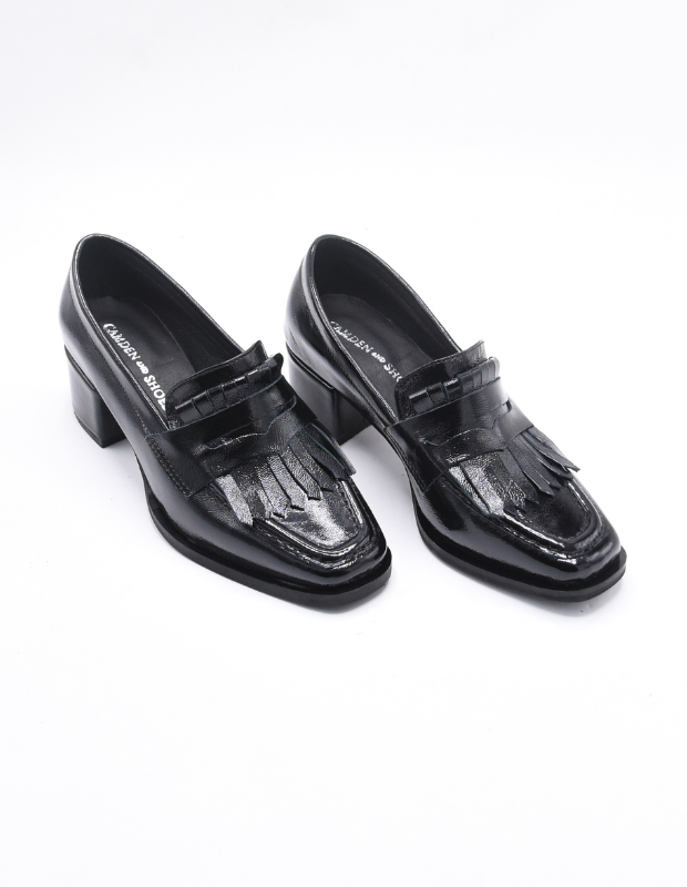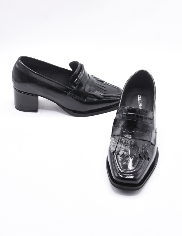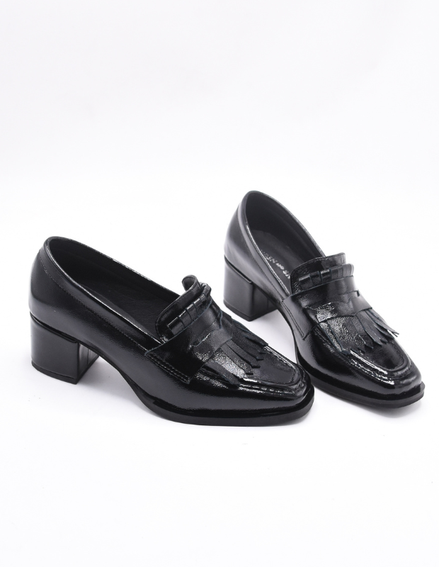 עשוי עור טבעי מבריק עם גימור פרנזים אלגנטי ועקב בלוק יציב שמעניק נוחות בלתי מתפשרת.