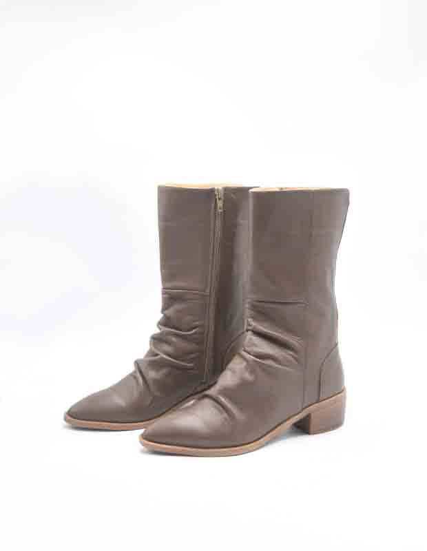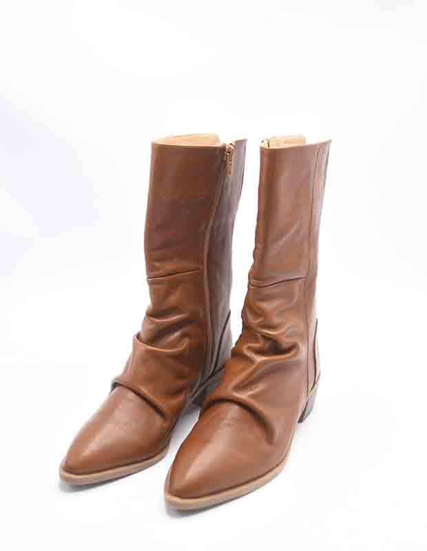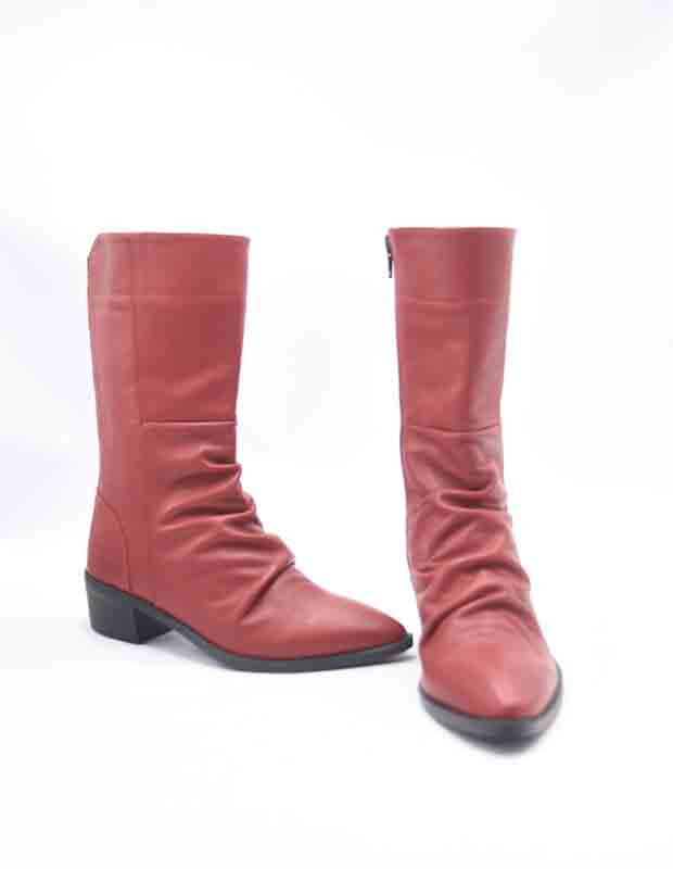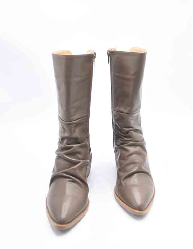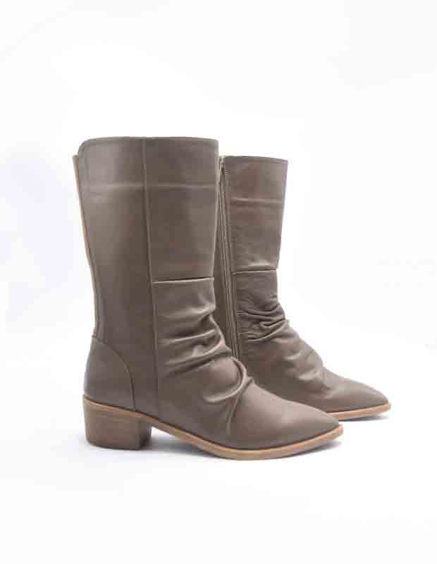 מגף אופנתי עם קימוט עדין בחזית – מעניק מראה מחמיא, ארוך ורך לרגל.