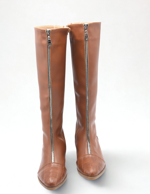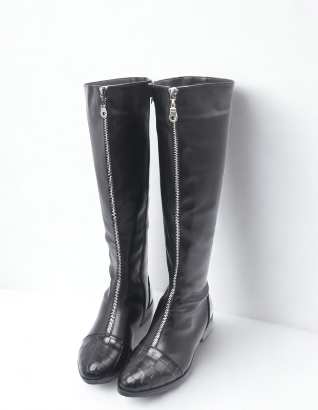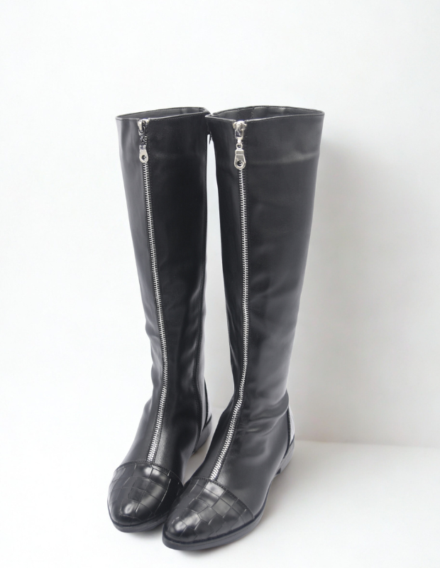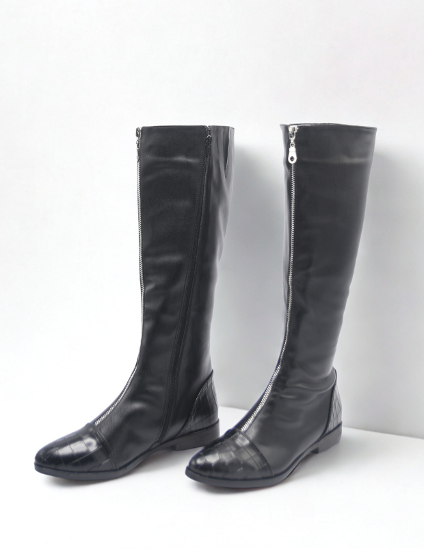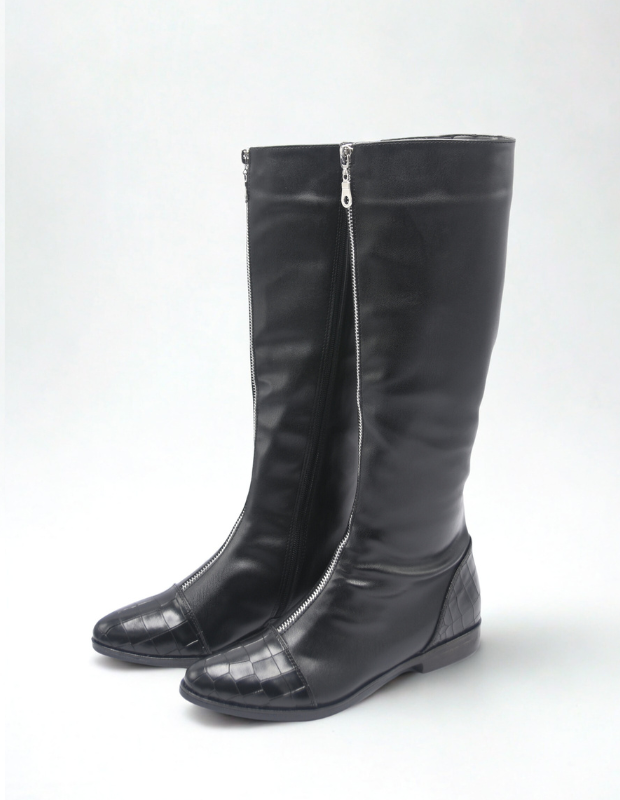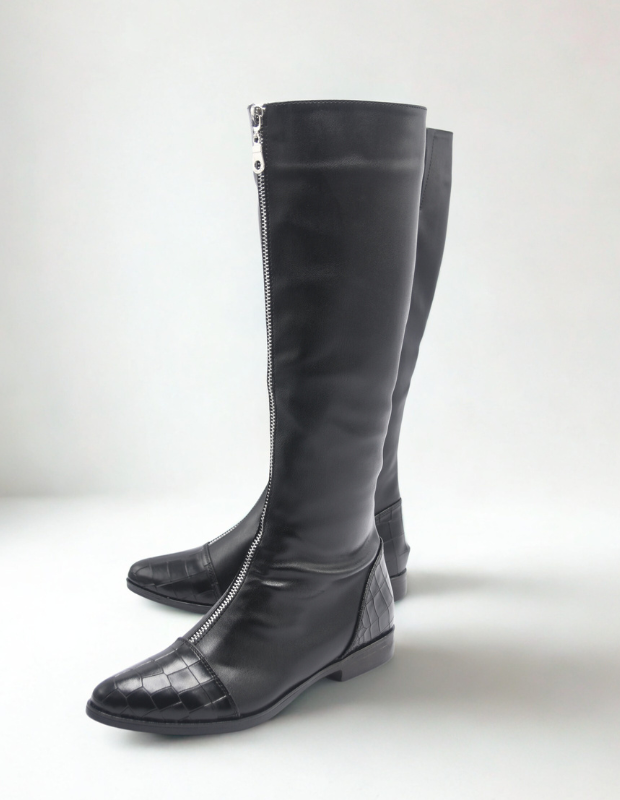 מגף דמוי עור גבוה בעיצוב קלאסי עם טאץ’ יוקרתי.