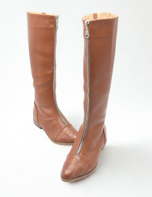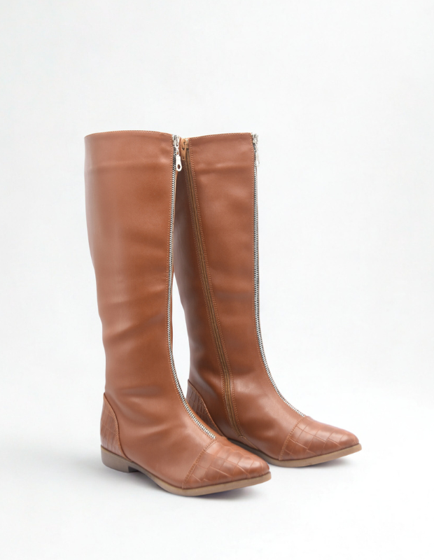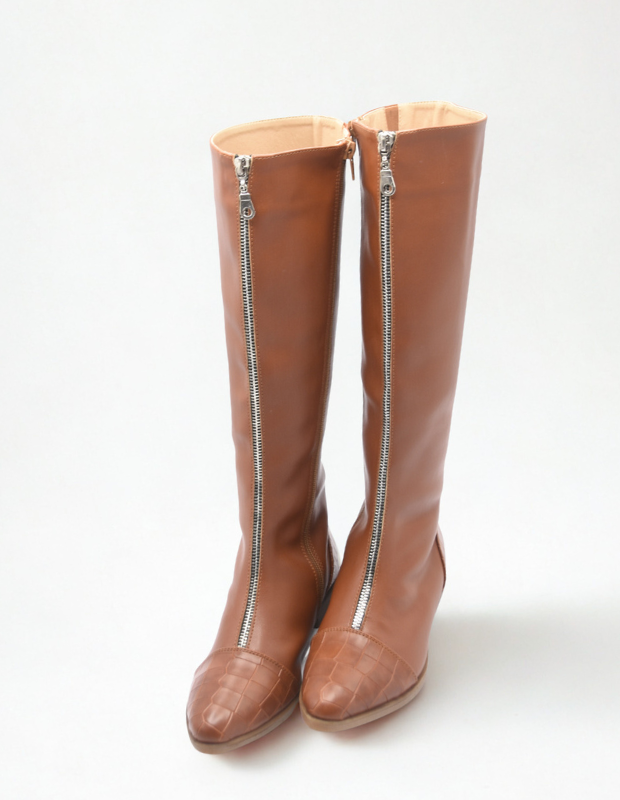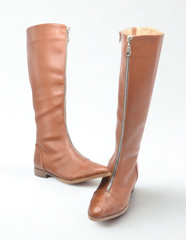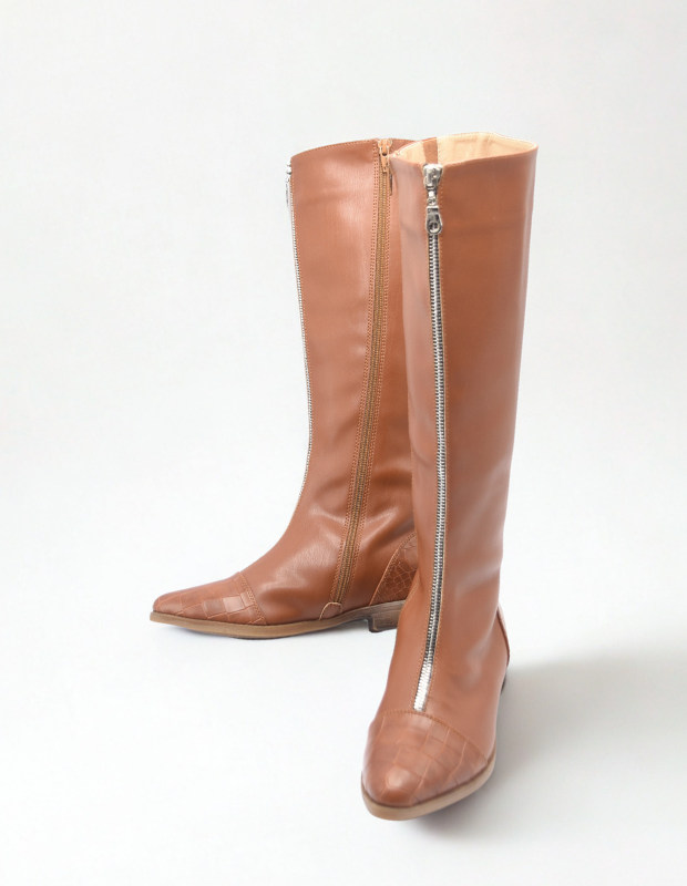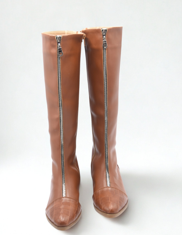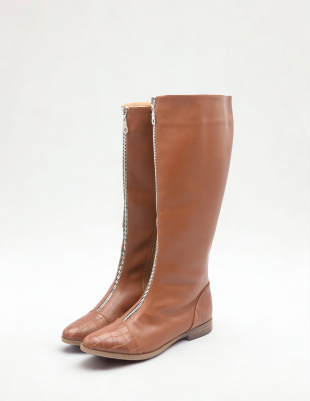 מגף דמוי עור גבוה בעיצוב קלאסי עם טאץ’ יוקרתי.