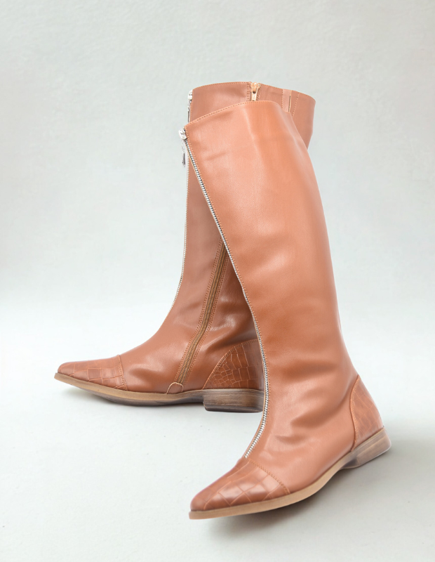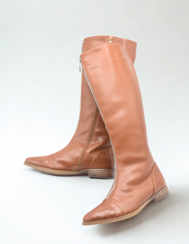 עשוי עור חלק ואיכותי, עם רוכסן קדמי מלא לנעילה נוחה ולמראה אלגנטי, ושפיץ מעוגל עם חיתוך טקסטורלי עדין בקדמת הנעל.