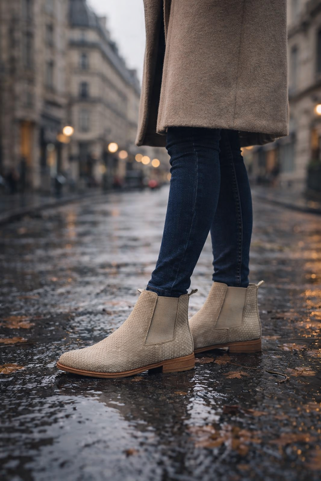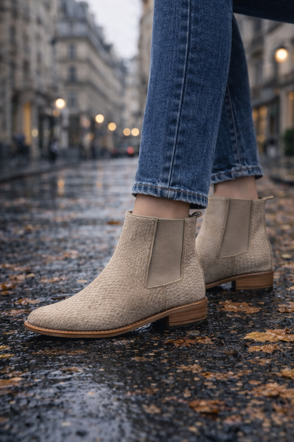 גזרה מחמיאה עם גומי צד גמיש לנעילה קלה ונוחה, סוליה שטוחה ויציבה בגוון טבעי, ולוק שמשתלב מושלם עם ג׳ינס, שמלה או מכנס מחויט.