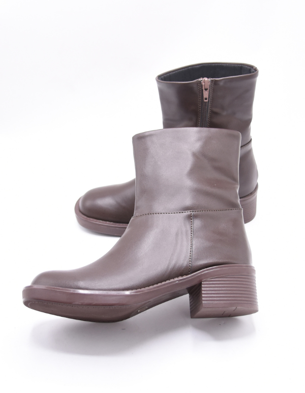 מגפון קלאסי בגוון שוקולד חמים, בעיצוב נקי ועל-זמני שמעניק לכל הופעה טון של יוקרה טבעית. עשוי דמוי עור איכותי במגע רך ונעים, עם רוכסן פנימי לנעילה נוחה ועקב בינוני רחב לנוחות מרבית לאורך כל היום.