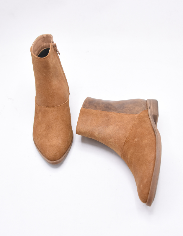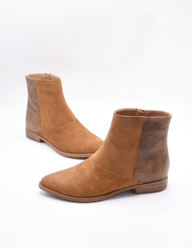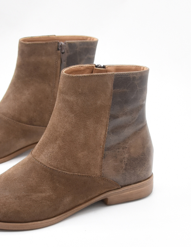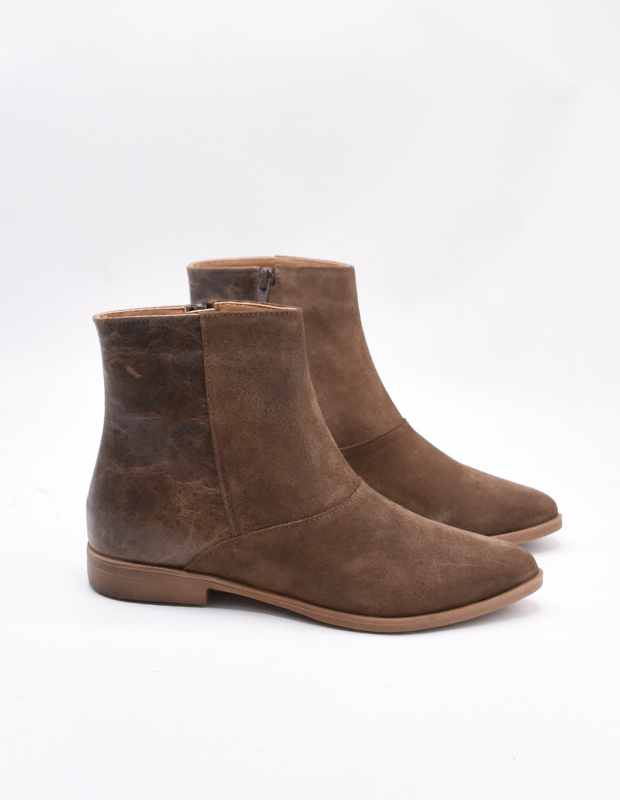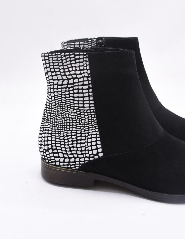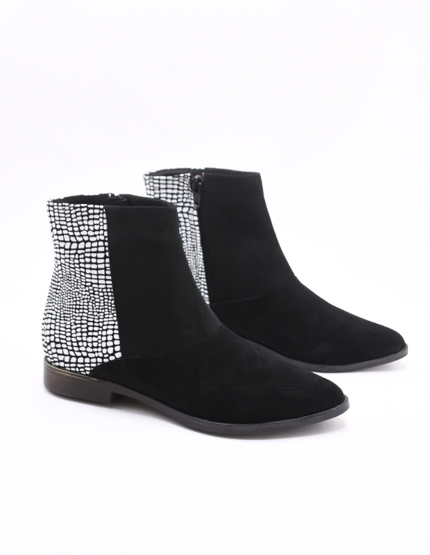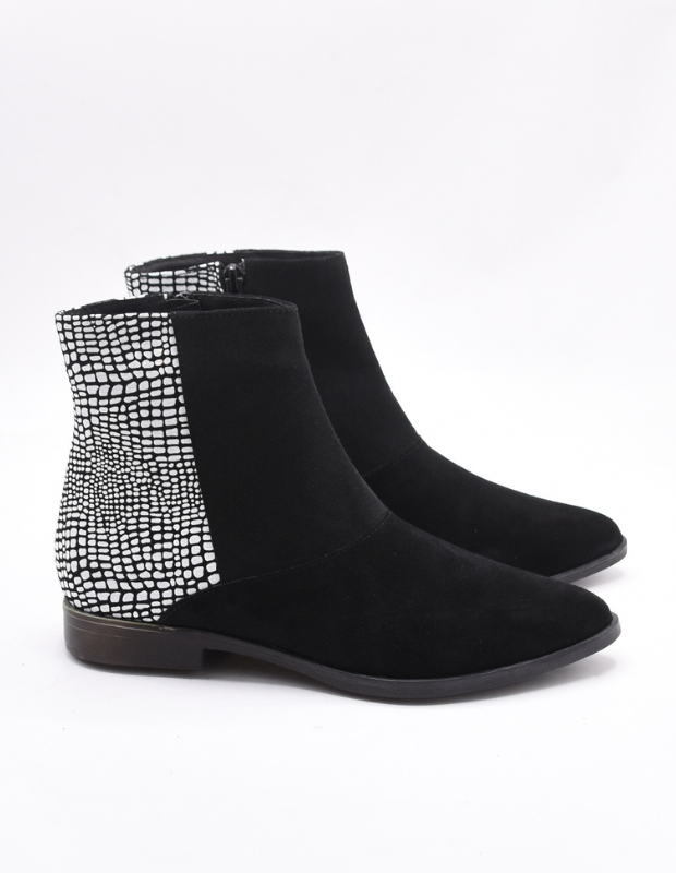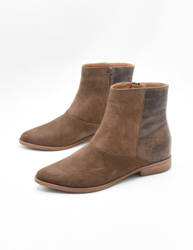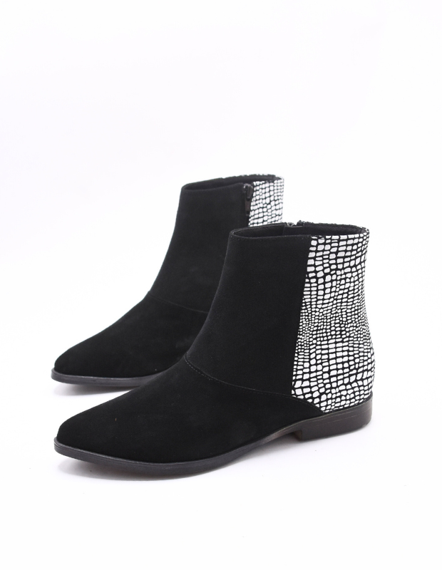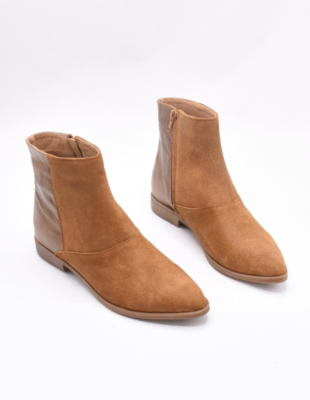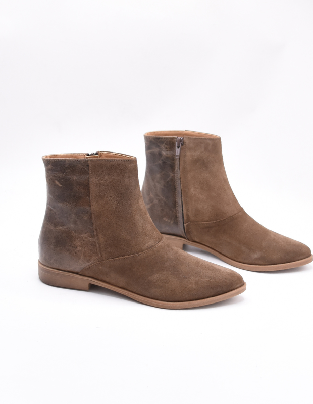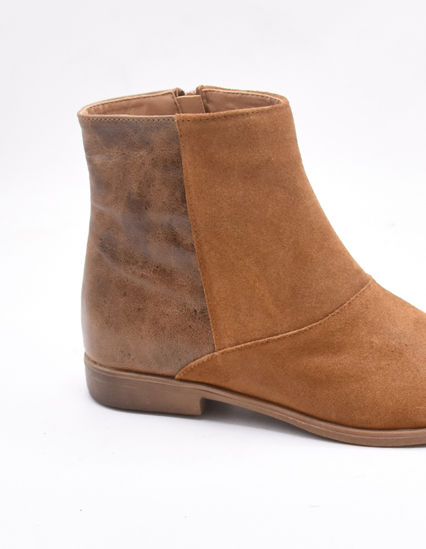 מגפון שטוח בעיצוב נקי וקלאסי, עשוי זמש רך למגע עם שילוב עור בגב – שמוסיף טוויסט אופנתי וייחודי.