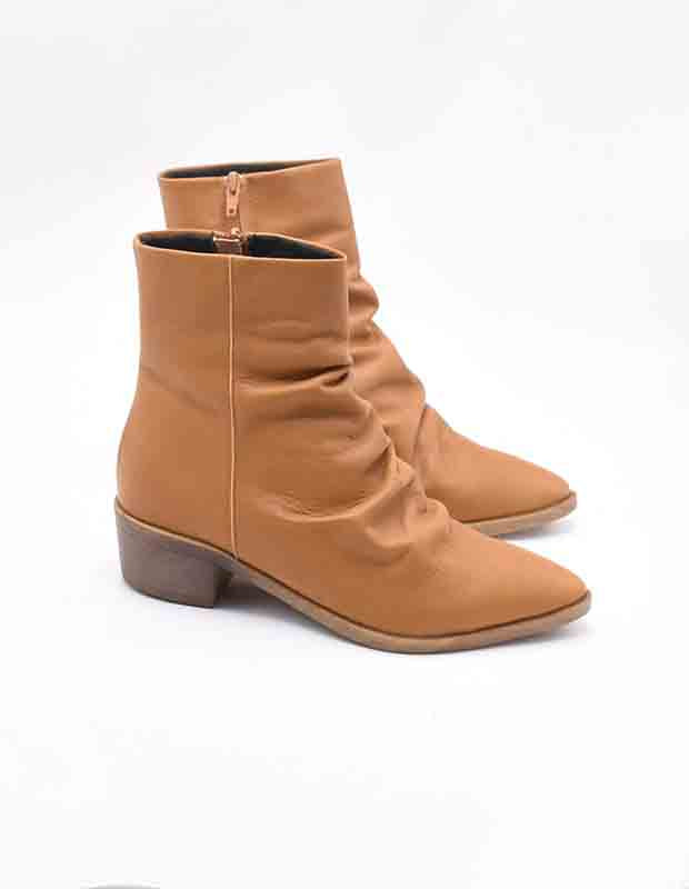 מגף עשוי עור נאפה רך במיוחד, בעבודת-יד מוקפדת, עם כיווצים טבעיים שמוסיפים עומק וטקסטורה ייחודית. רוכסן צד דיסקרטי מאפשר נעילה קלה ושומר על הקווים הנקיים של העיצוב. שילוב נדיר של נוחות פינוק וגלאם מודרני – מגף שמתאים לכל הופעה, מבוקר קז’ואלי ועד ערב אלגנטי.