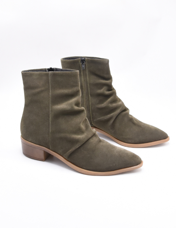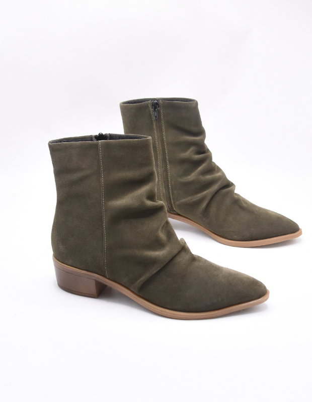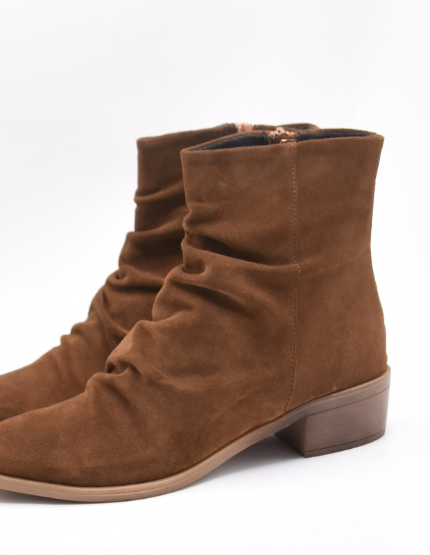 מגף זמש עור בעבודת יד, עם כיווצים רכים ואלגנטיים לכל האורך – בדיוק המגע שהופך כל לוק לשיקי וקליל. סוליית גומי יציבה נגד החלקה מעניקה נוחות מושלמת בכל צעד. דגם שמצליח לשלב סטייל נצחי עם תחושת רכות ונינוחות שלא נגמרת – עד מידה 45.